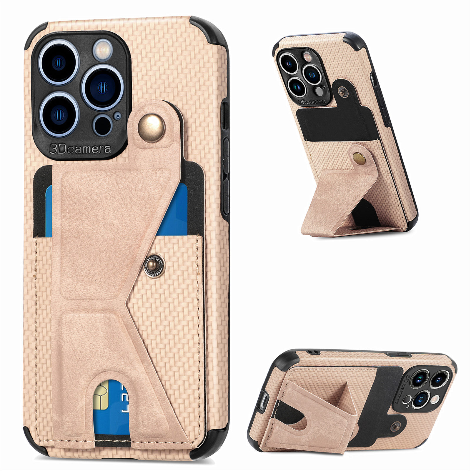 新款適用蘋果13多功能插卡多角度支架手機殼卡包磁吸防摔PU保 護套